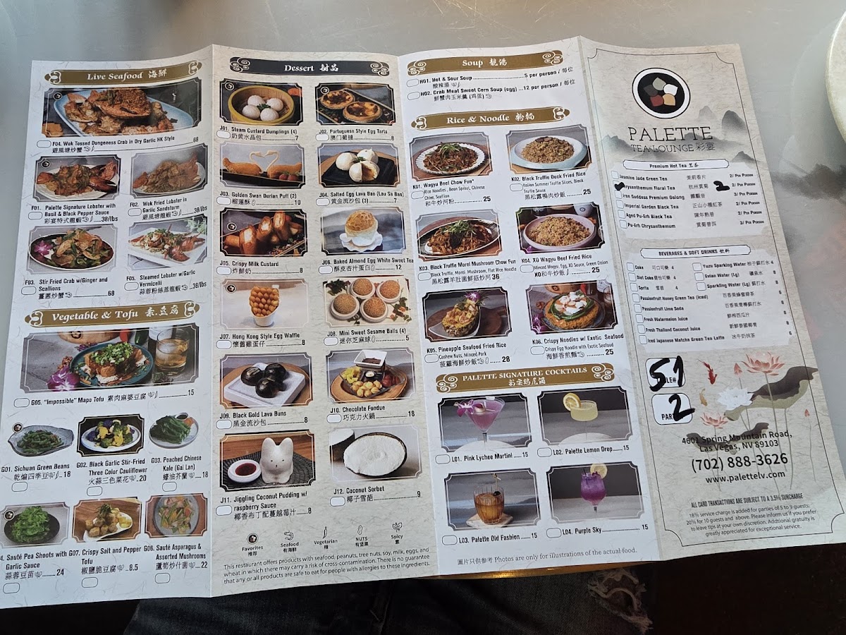 Welcome to Palette Tea Lounge & Dim Sum, an exquisite dining destination located in Las Vegas, where modern elegance meets authentic Chinese flavors. The menu showcases an exceptional range of dishes that tantalize the palate, from the aromatic Palette Signature Lobster with Basil & Black Pepper Sauce to the indulgent Wagyu Beef Chow Fun. Every dish is crafted with the freshest ingredients, highlighting a dedication to quality and taste that patrons rave about.